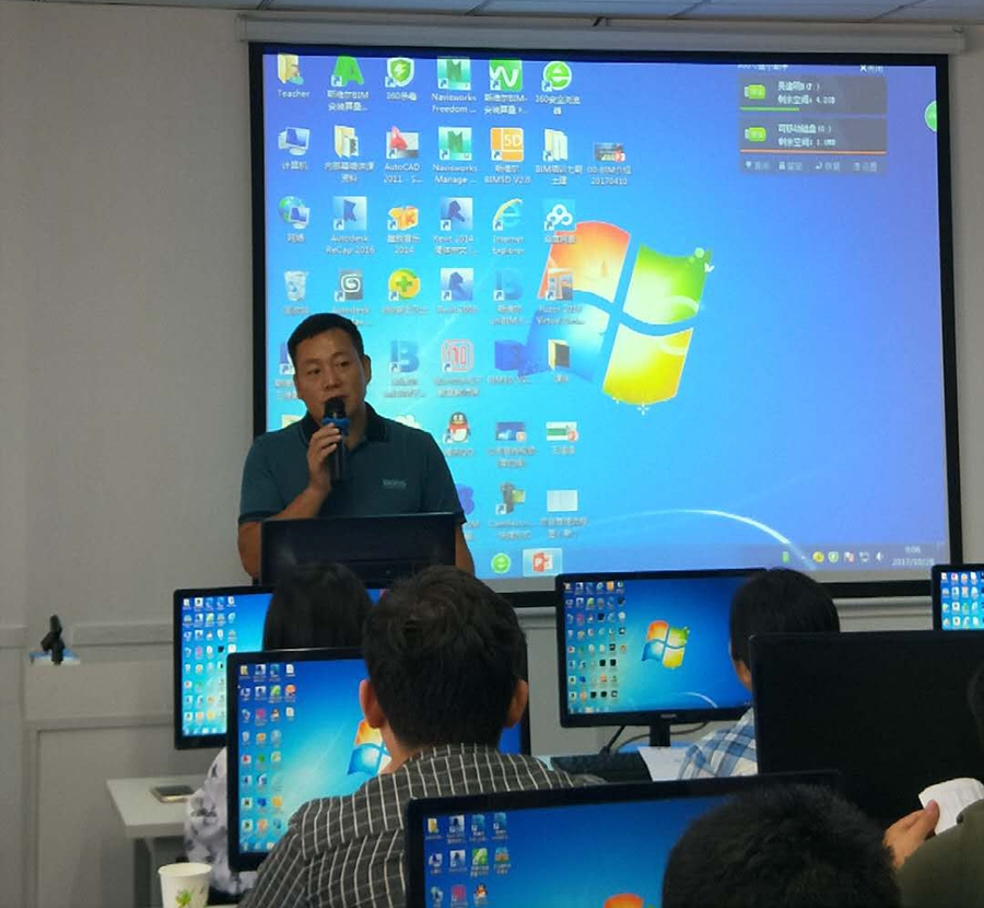 在開班儀式上,拓普威董事長劉志方指出:一、BIM技術目前在建設工程領域突飛猛進,拓普威公司要緊跟新技術發展趨勢,學好、用好新技術;二、拓普威從去年開始著手準備推進BIM技術,希望通過此次培訓,能夠將這一新技術,應用到工程實踐中去,真正體現出“技術是生產力”;三、將BIM技術和施工組織設計相結合,將施工組織設計,專項方案圖形化、數字化,逐步向3D,4D方向發展。